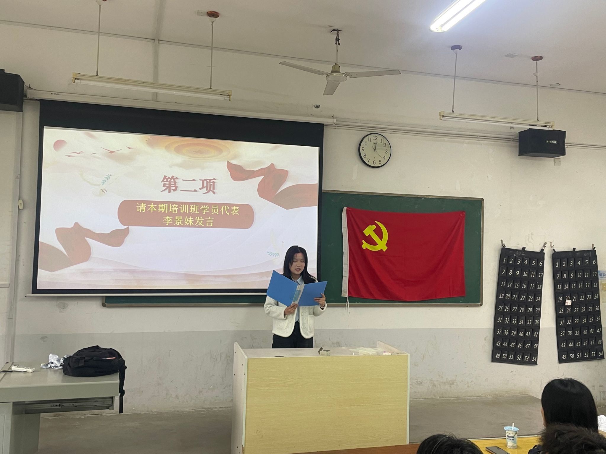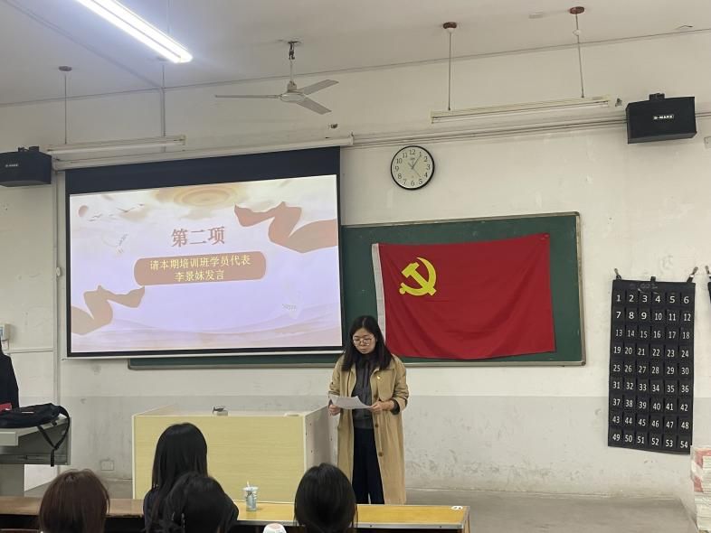 开班仪式在庄严肃穆的国歌声中开始,与会人员全体起立奏唱国歌。23级财务管理专业李景妹同学作为学员代表发言,代表全体学员郑重承诺将以最饱满的热情、最全面的投入,最实际的行动来完成本次培训班学习,以实际行动争取早日入党。随后,本期党校培训班班主任李玉凤对培训期间的学习纪律提出具体要求,勉励学员们要“勤学善思、笃行致远”,确保党校培训取得实效。