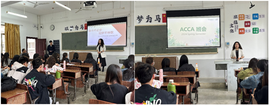 (经管学院 学生通讯员 张芷瑜 徐晨超)2024年4月19日下午4点,一场精彩纷呈的 2023 级财务管理专业(ACCA 方向)春季班会,在N4-205 教室举行。ACCA 项目中心主任孙正新老师、楷柏财经教育ACCA 班主任谢聪慧老师、武汉纺织大学优秀学生代表王晋杰同学,以及全体 2023 级财务管理专业(ACCA 方向)学生齐聚一堂,共襄此次盛会。