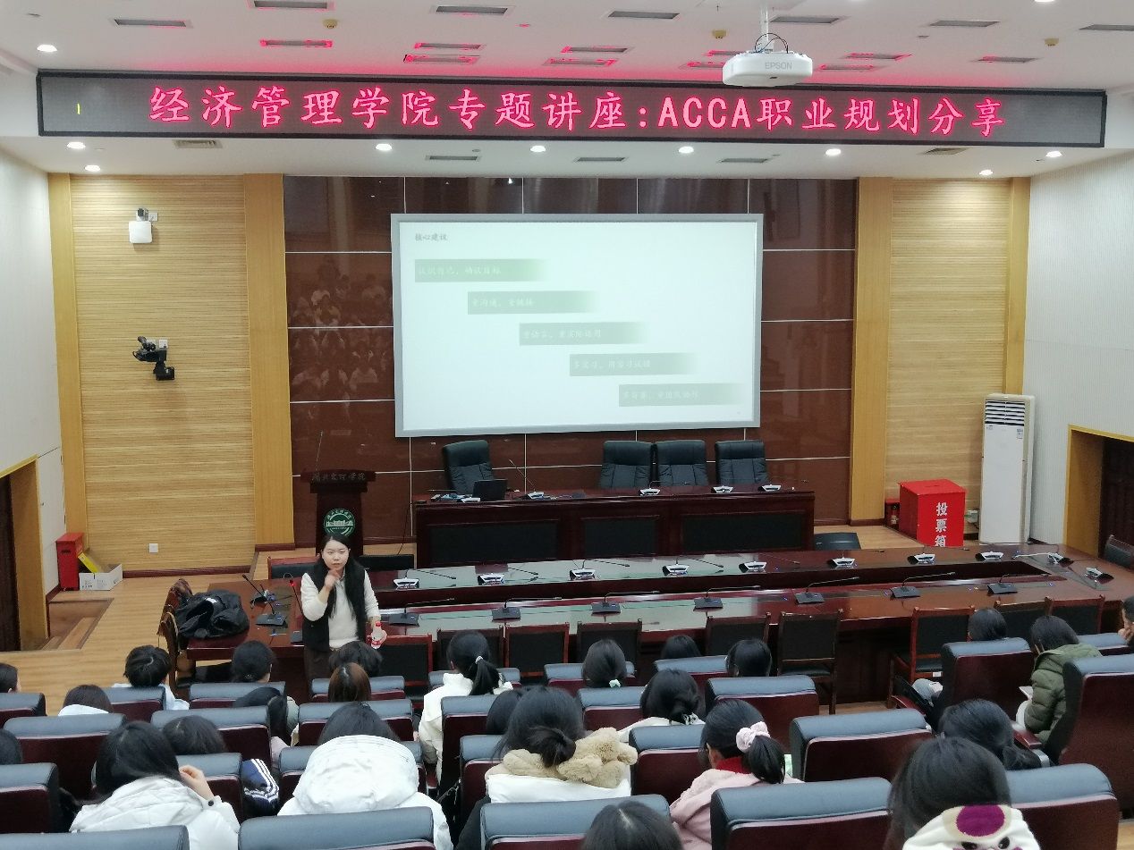 德勤管理咨询公司顾问储佳玲以《ACCA的成长之路》为题,和与会师生分享了她的ACCA历程。储老师是ACCA专业的优秀学员,多次受曼彻斯特大学就业中心邀请给中国留学生做就业指导分享,并多次受ACCA官方协会、知名教育机构等邀请给全国各高校学生做过多场职业规划分享。